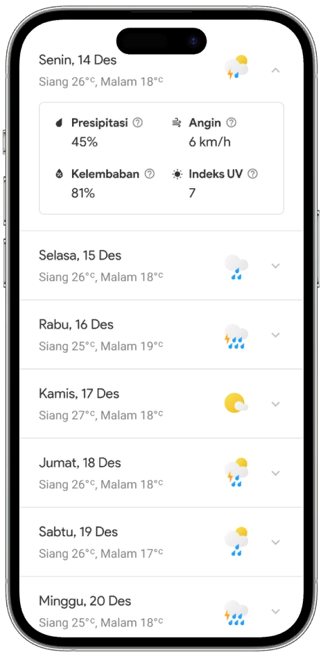 Opteo notifies you of weather changes for your exact location. Powered by artificial